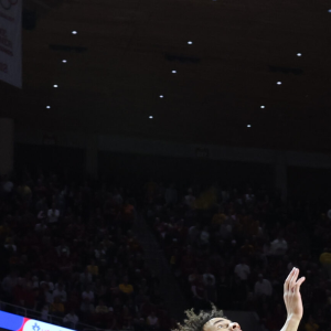 Rob Gray, Jan 15 • 0 Comments Jan 15, 2025; Ames, Iowa, USA; Iowa State Cyclones guard Curtis Jones (5) drives to the hoop past Kansas Jayhawks guard Zeke Mayo…