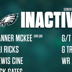 The Philadelphia Eagles officially announced the inactives list for their 2025 NFL playoffs Wild Card game against the Green Bay Packers. The following Eagles players WILL NOT PLAY: Tanner McKee,…